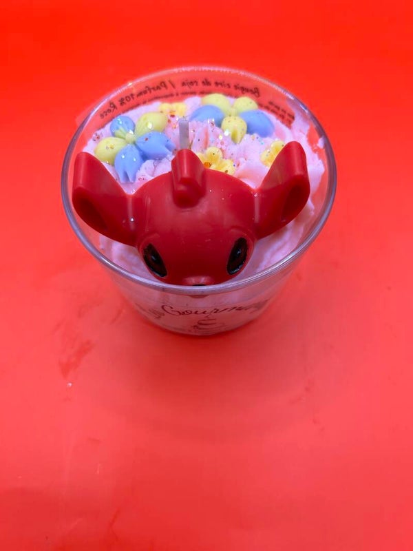 Bougie gourmande parfum rose, 150gr de cire de soja et fragrance de grasse.
