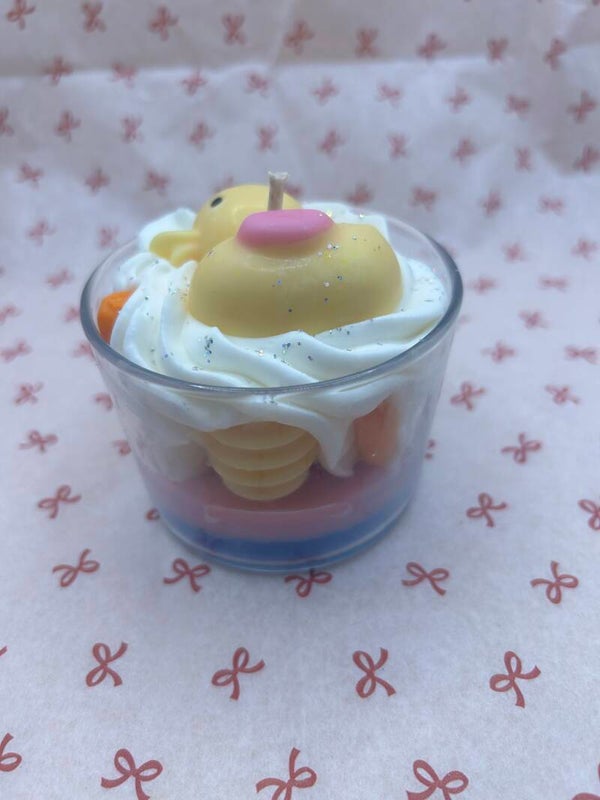 Bougie canard, parfum mon doudou, 150 gr de cire de soja et fragrance de grasse.