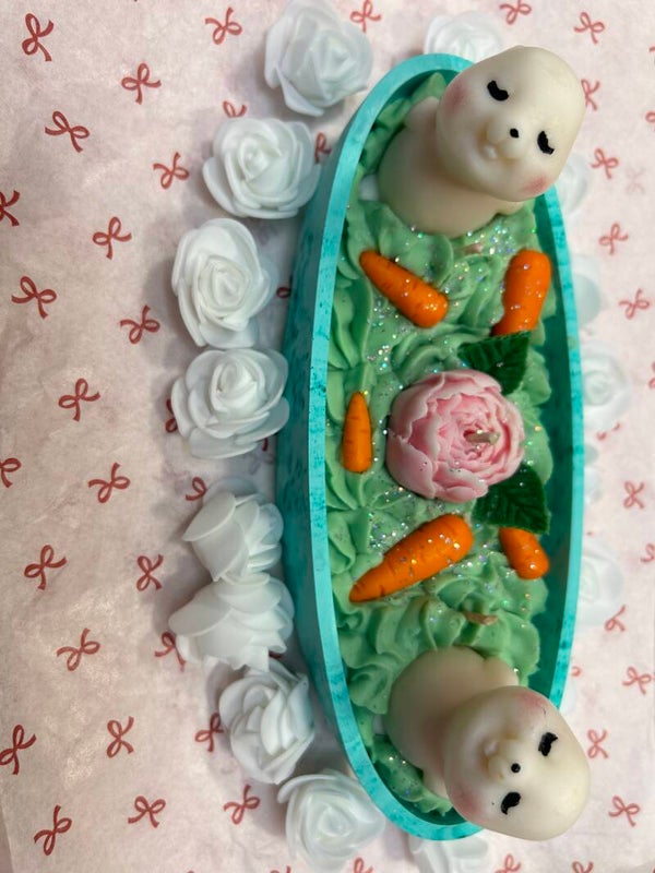 Bougie de 300 gr de cire de soja et fragrance de grasse, parfum crème nini dans sont plateau jesmonite 🥰