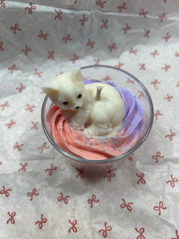 Bougie chat parfum crème nini, 180gr de cire de soja et fragrance de grasse.