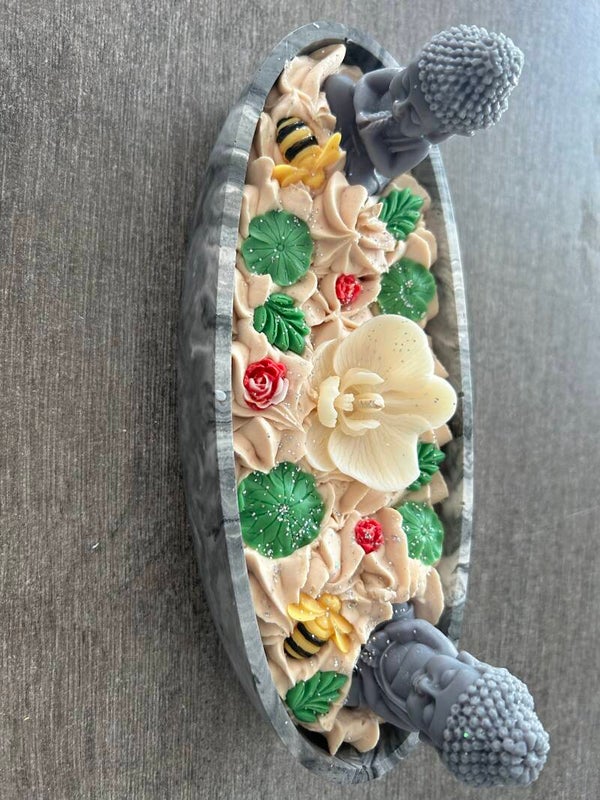 Bougie plateau jesmonite parfum linge propre, 330 gr de cire de soja et fragrance de grasse.