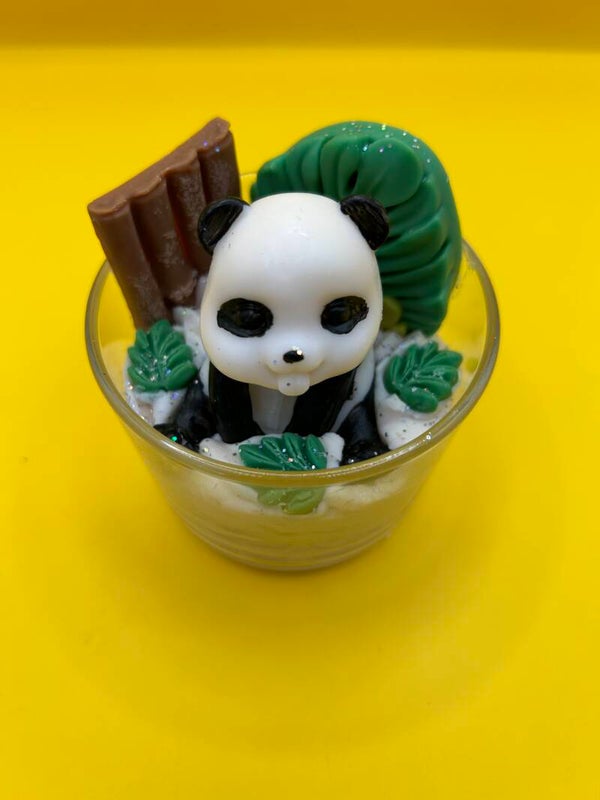 Bougie panda 🐼 entre 160/170 ce de cire de soja et fragrance de grasse.