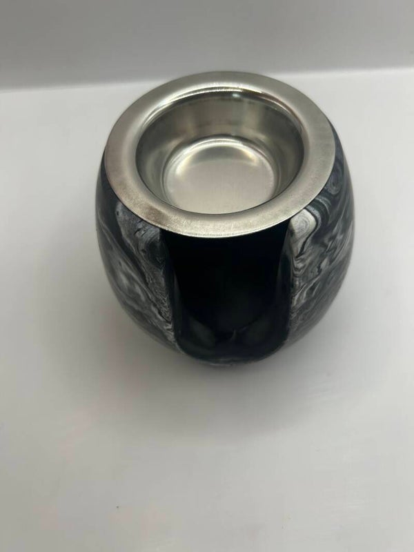 Brûleur fait main en jesmonite couleurs noir et blanc .