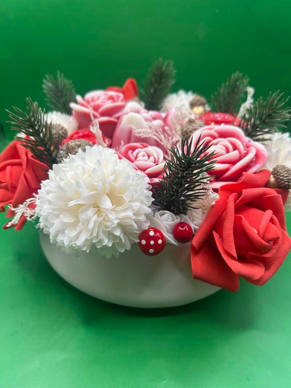 Bouquet fondants parfum houx 250gr de cire de soja et fragrance de grasse, plateau fait main en jesmonite .