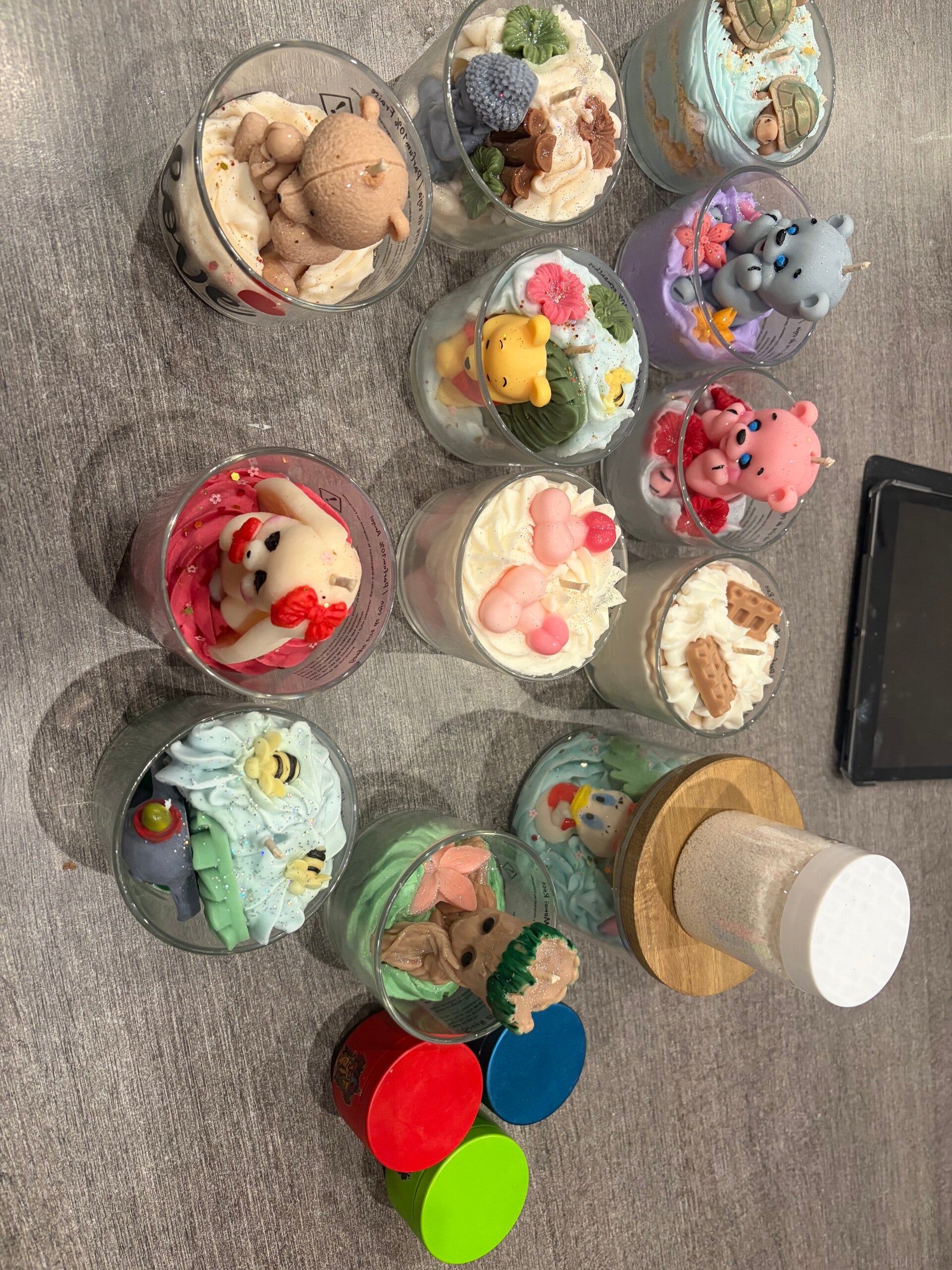 11 bougies gourmande 1 avec étiquette, 1 bougie bocal 1 poudre et 3 mini bougies Harry . 1 lion
